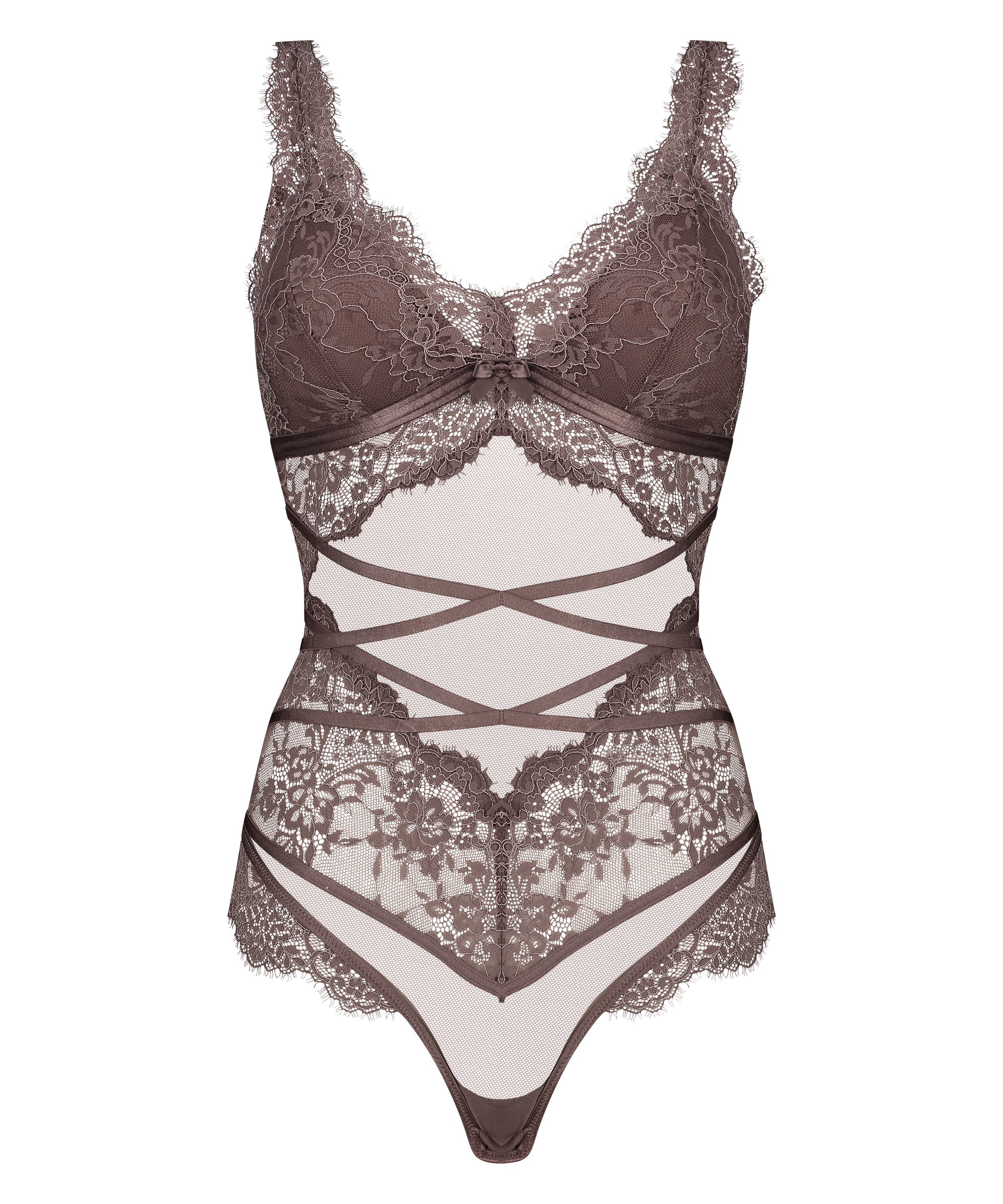Cultivez une allure féminine dans ce body ! Ce superbe modèle est recouvert de dentelle et de détails en résille. Muni de bonnets à armatures, il est partiellement ouvert au dos pour un look sensuel. Associez-lui vos pièces préférées.