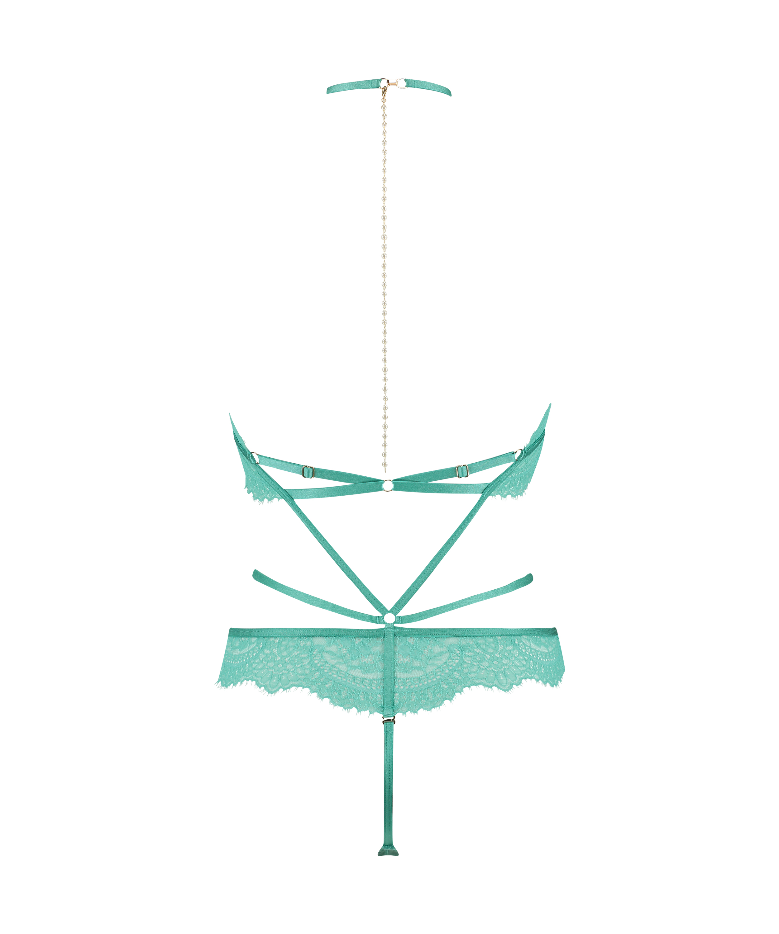 Soyez sexy dans ce body ! Avec un aspect dentelle intégrale semi-transparente. Avec beaucoup de détails de sangles à l’avant et à l’arrière pour des ajouts épicés. Le dos est décoré d’un joli collier de fausses perles.