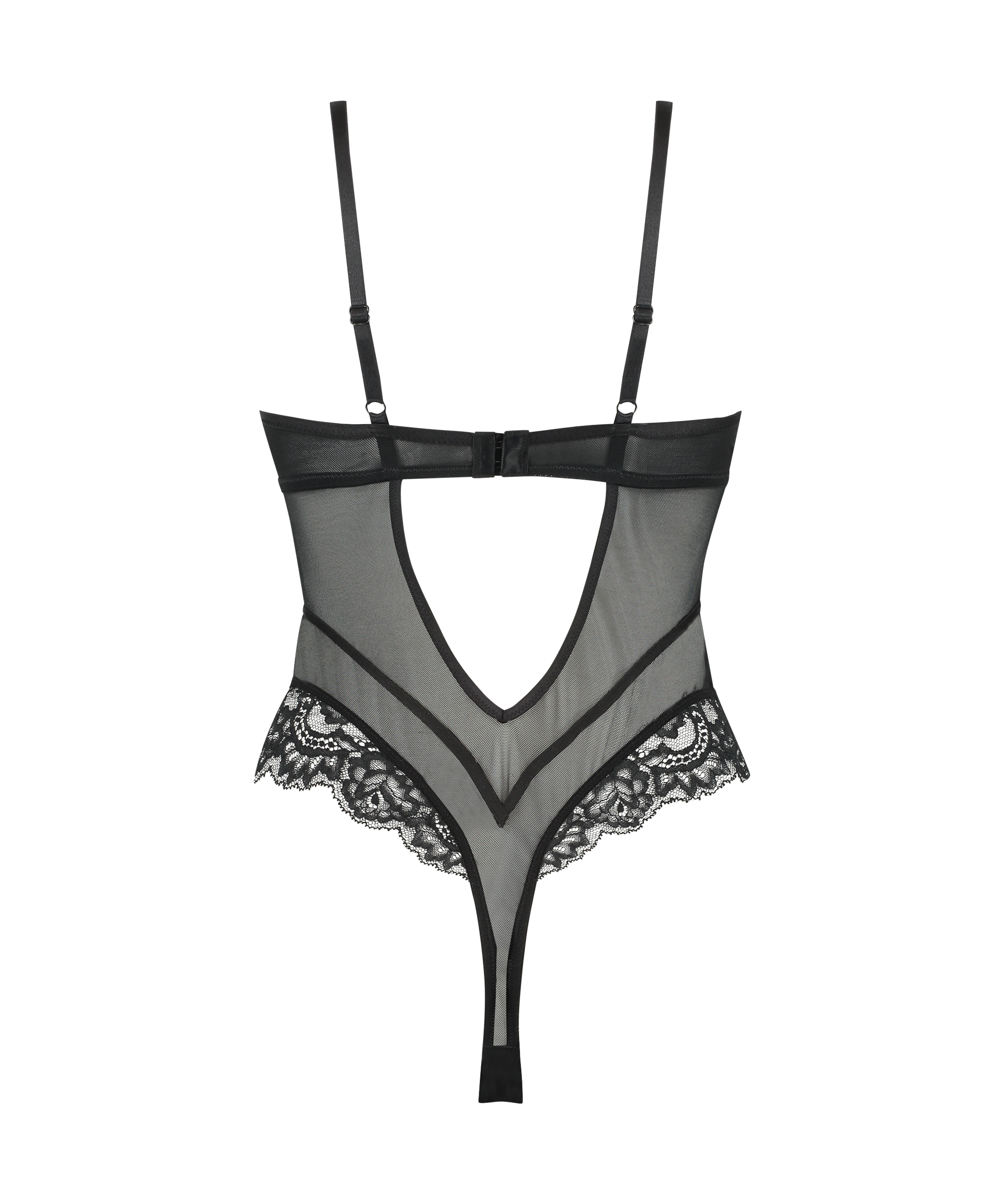 Faites sensation dans ce body en peluche ! Avec des découpes et détails en résille sexy, ce modèle se compose entièrement de dentelle. Le tout est agrémenté d'un joli nœud entre les bonnets. Associez-le à un kimono pour compléter votre look !