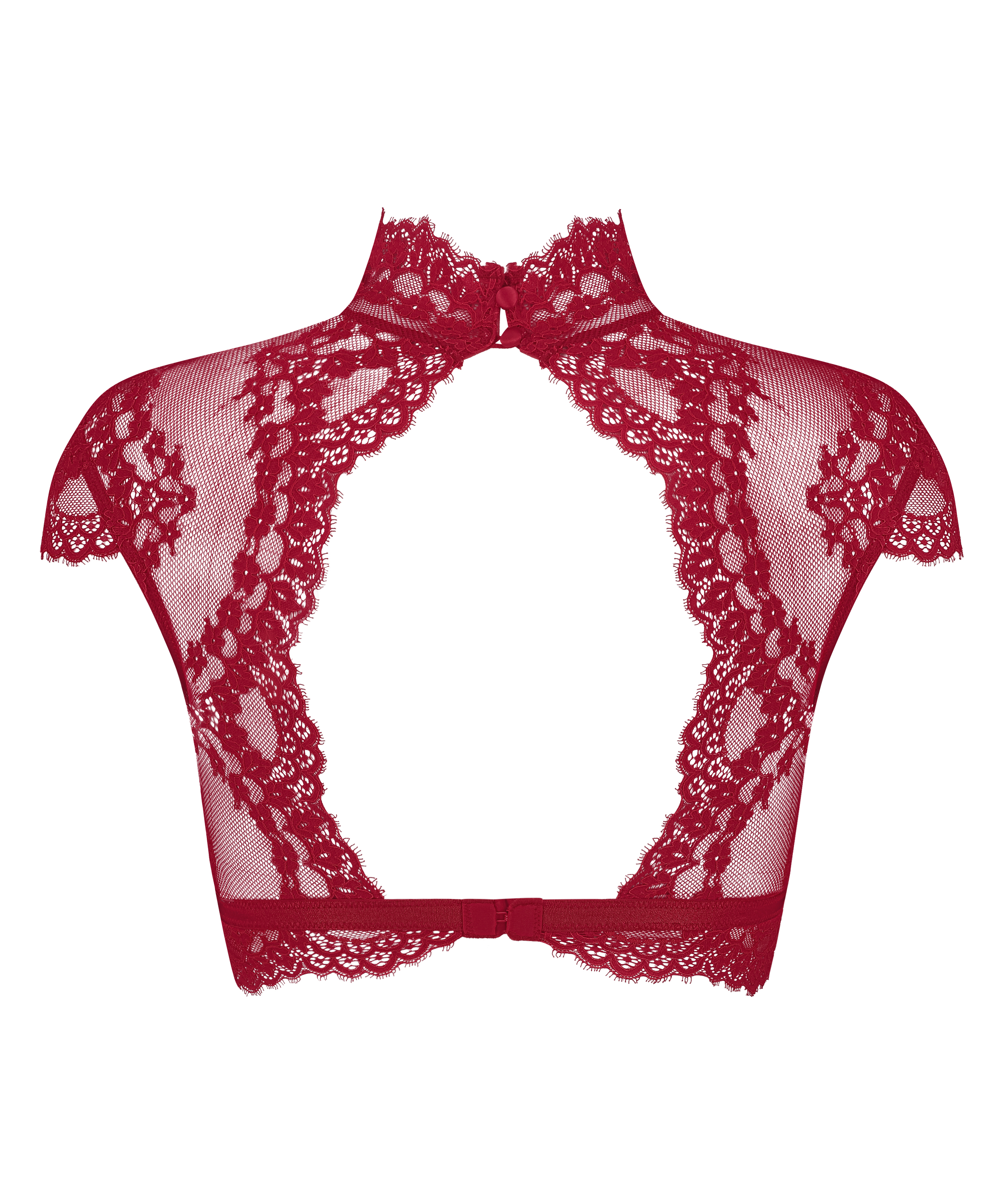 Sentez-vous sexy dans ce haut bralette! La bralette se compose de dentelle et a une mancheron, un dos ouvert sexy et des boutons en satin à l'arrière du col. Le haut est également parfait pour une soirée !