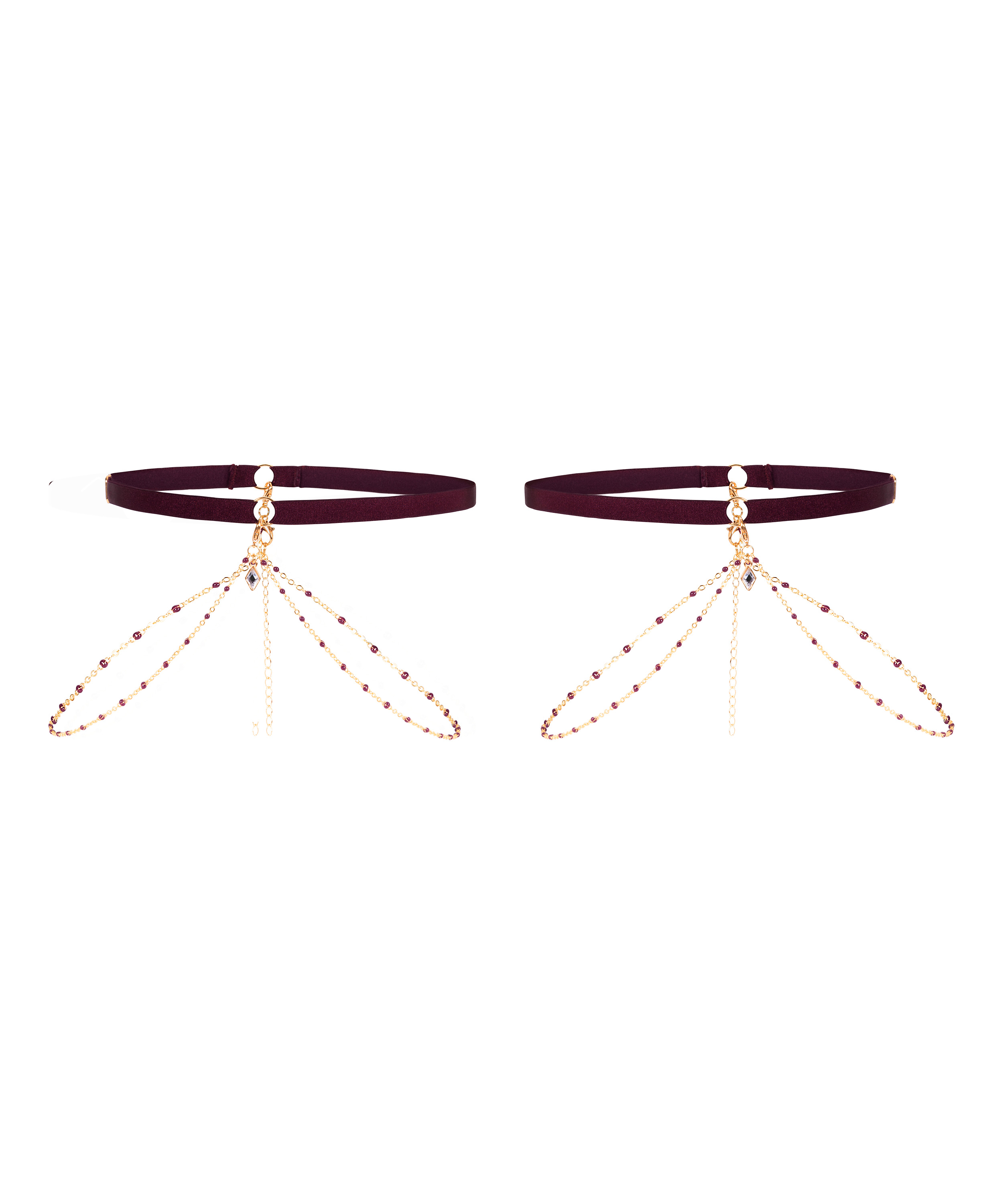 Ajoutez une touche de glamour à votre look avec ces superbes jarretières. Conçues pour reposer confortablement sur la cuisse, les jarretelles sont ornées de pierres qui scintillent à chaque pas. Qu'elles soient associées à de la lingerie ou portées comme accessoire de charme, ces jarretières apportent un mélange parfait de féminité et d'audace.