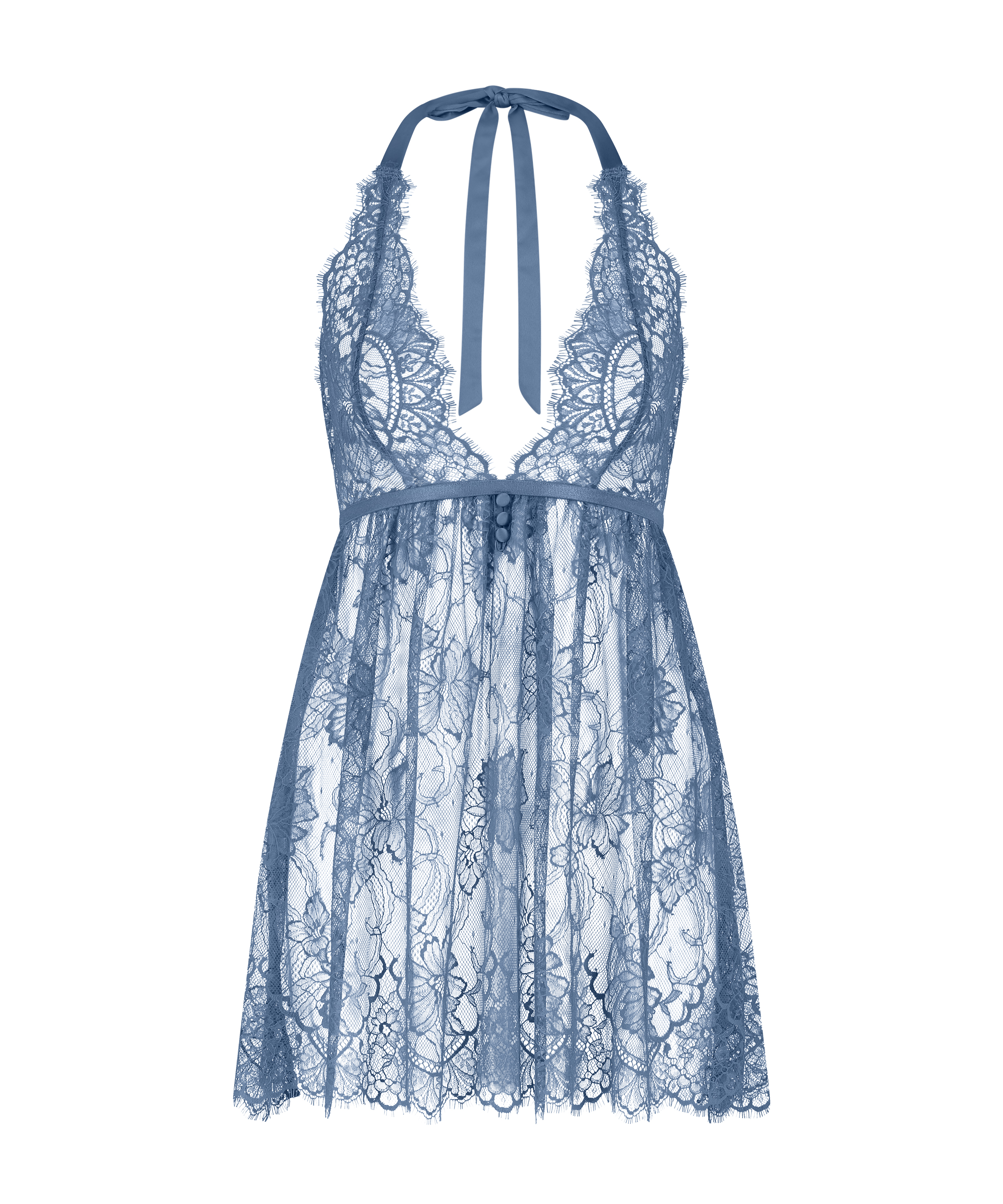 Soyez sexy dans cette nuisette toute en dentelle ! Elle est semi-transparente et ses bonnets ne sont pas rembourrés. Elle est dotée d'un nœud romantique et facile à porter au niveau du cou afin de l'attacher en toute simplicité. Combinez-la à une culotte assortie ! Ce modèle fait partie de notre collection Noir.
