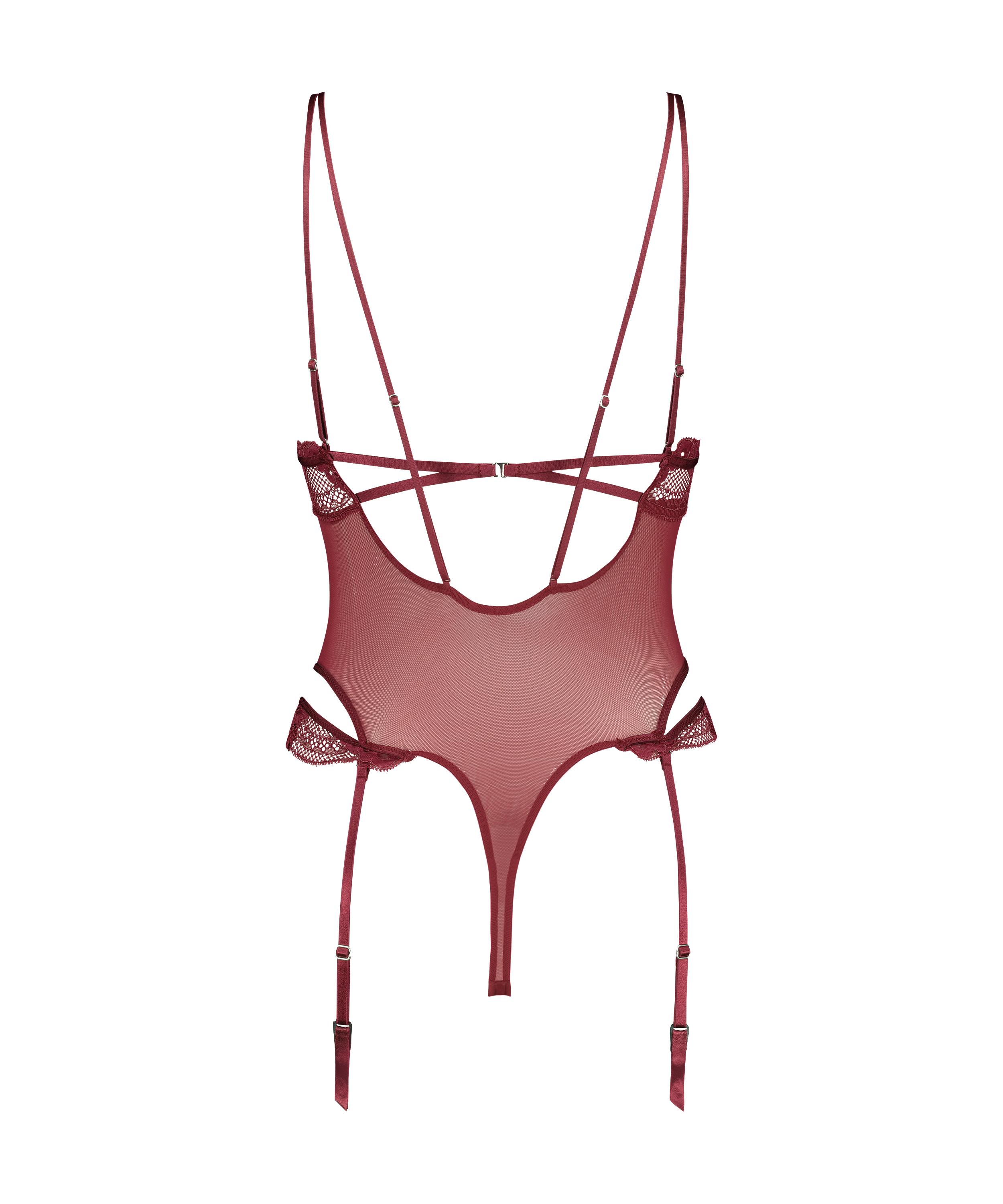 C'est un body très élégant et incontournable dans votre garde-robe ! Le body est composé de dentelle et de mesh avec des détails découpés. Il y a aussi de beaux détails incorporés dans le body. Le body n'est pas préformé et dispose de lanières de porte-jarretelles brillantes. Complétez votre ensemble avec une paire de jolis bas. Fait partie de la collection avec Rebecca Mir.