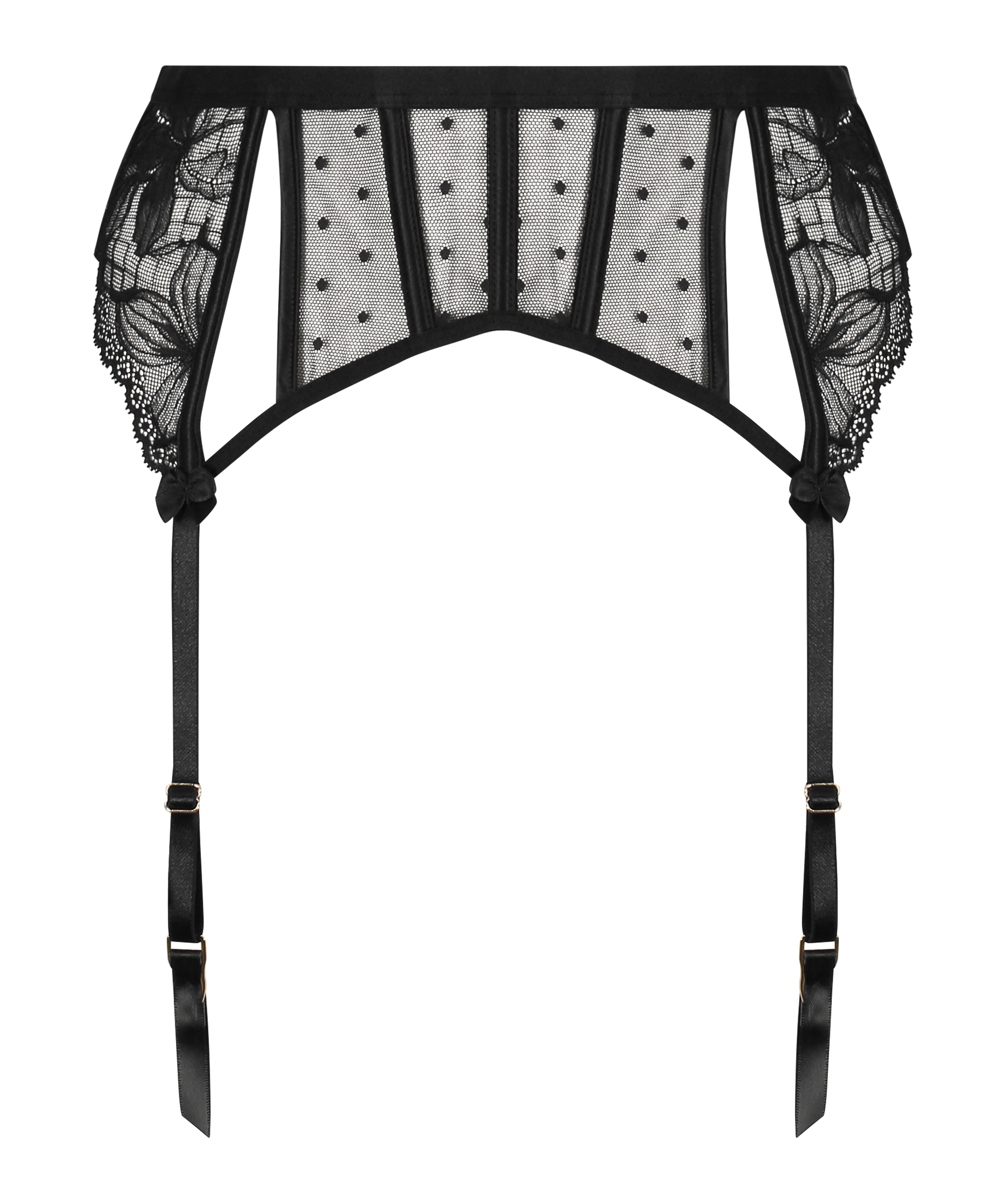 Complétez votre ensemble de lingerie sexy avec ces porte-jarretelles. L'aspect semi-transparent est créé par les détails de la maille sur toute la surface et les détails des bretelles dans le dos. Assortissez-les à l'ensemble Lulu ! Le modèle fait partie de notre collection Private.