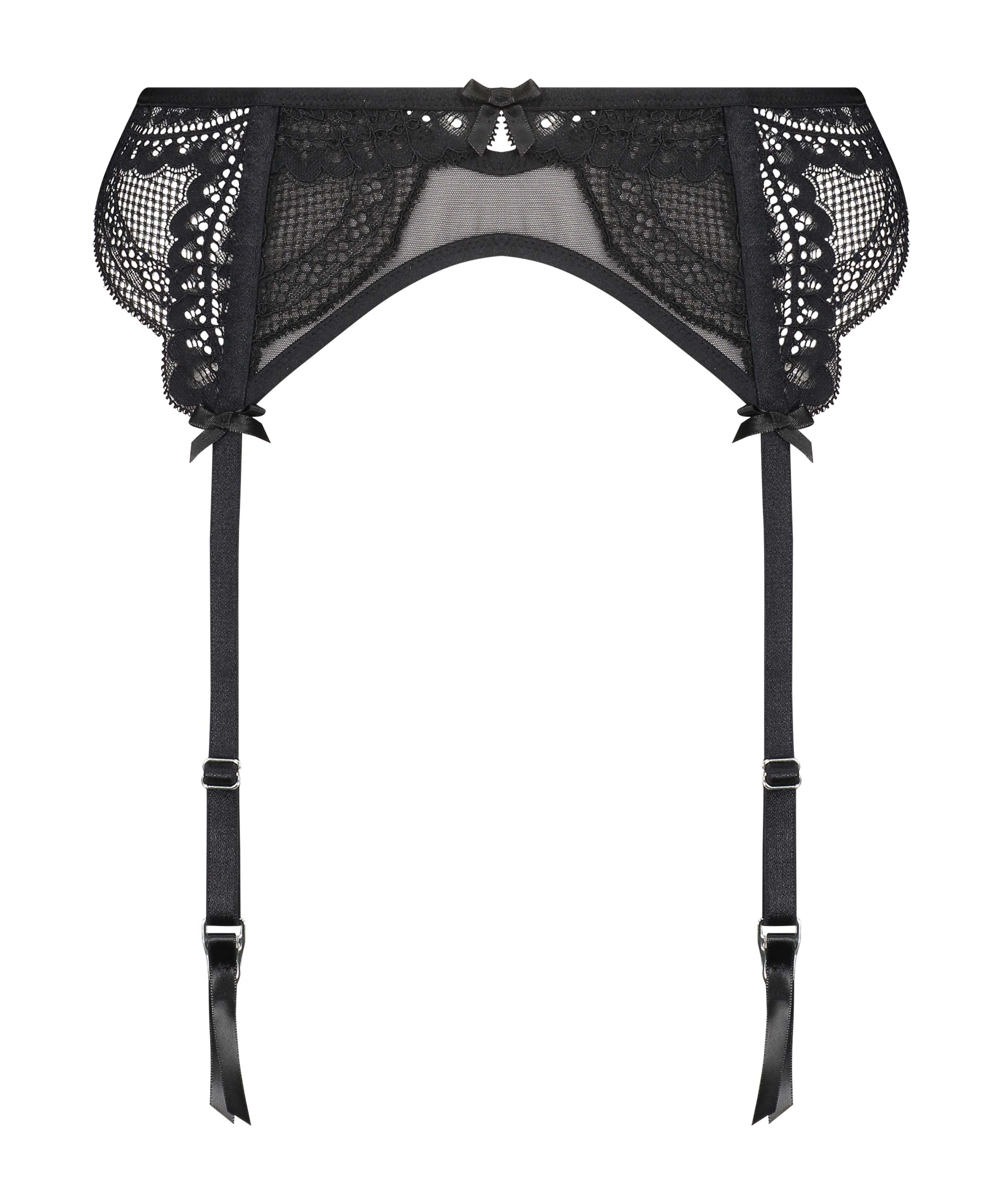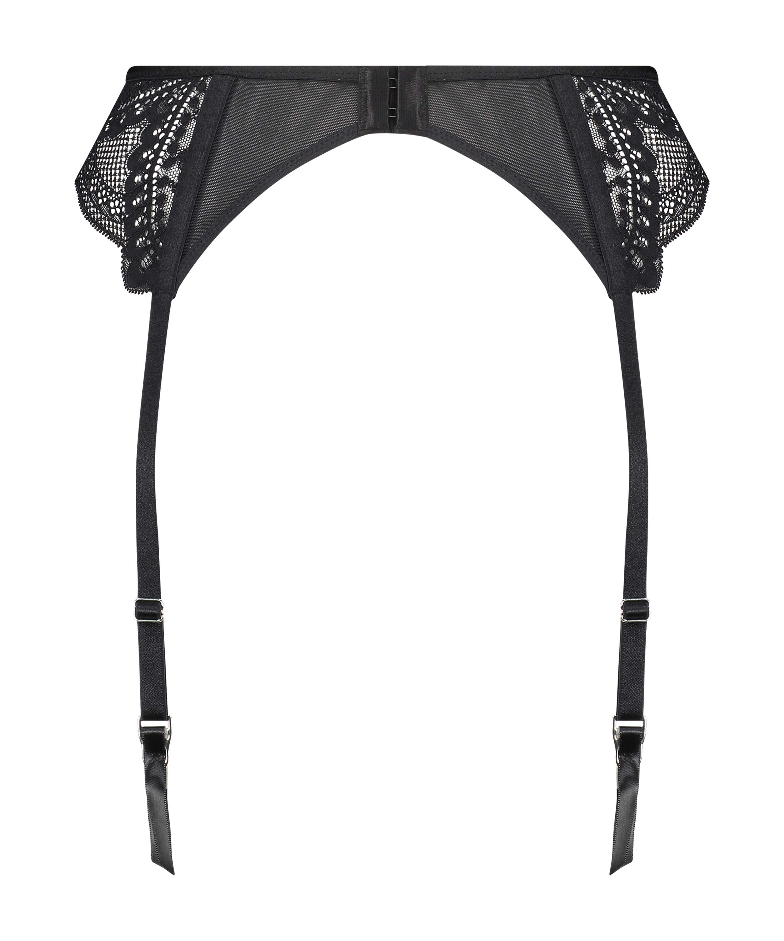 C'est la touche finale de votre ensemble de lingerie. Ce porte-jarretelles est fait de belle dentelle et de mesh semi-transparent. Fait partie de la collection avec Rebecca Mir.