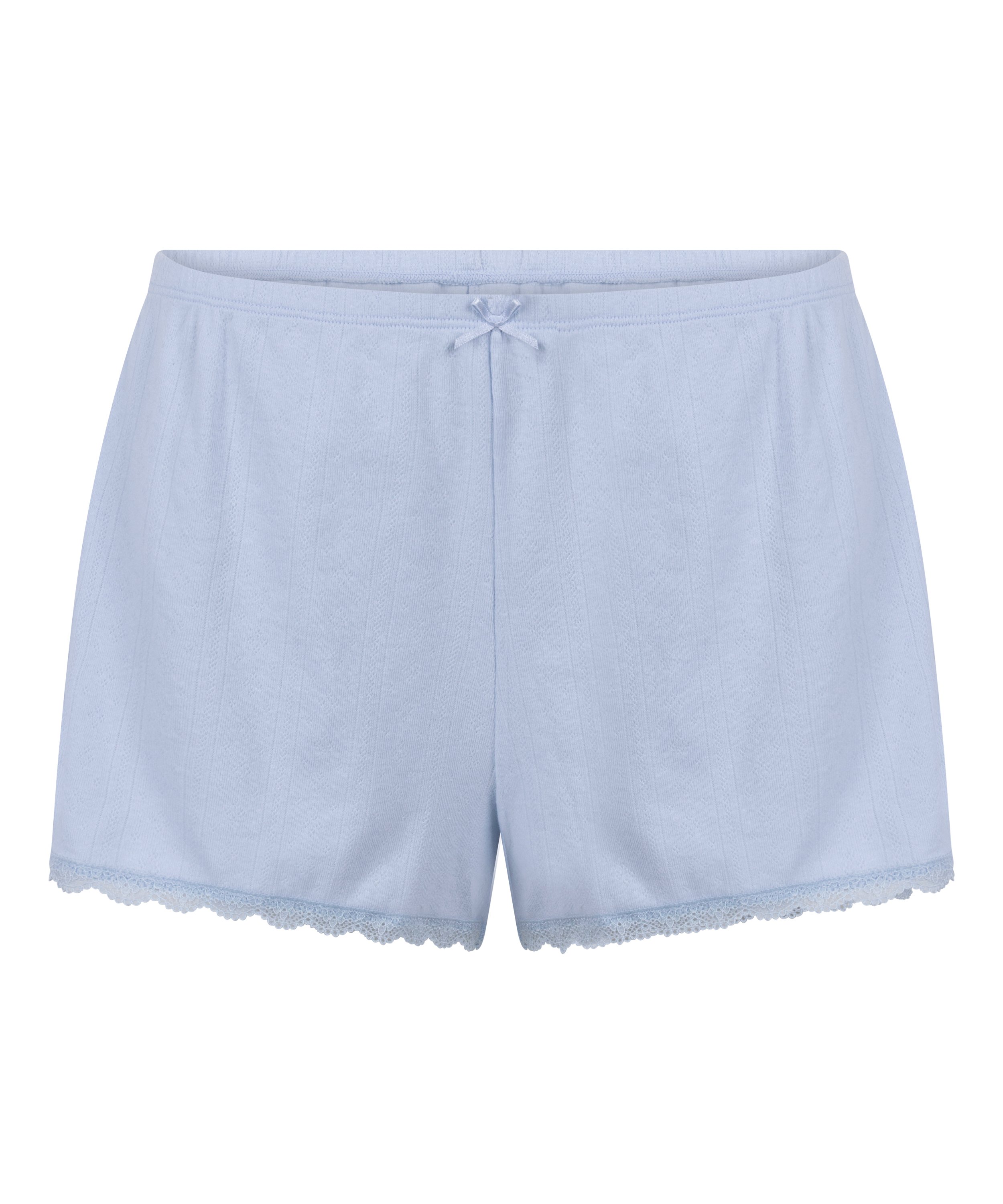 Restez à l'aise et élégante avec notre short. Fabriqué en pointelle douce, ce short présente un motif texturé qui ajoute une touche à votre tenue d'intérieur. Les détails en dentelle subliment le look, et la taille élastique assure un port sûr et confortable.
