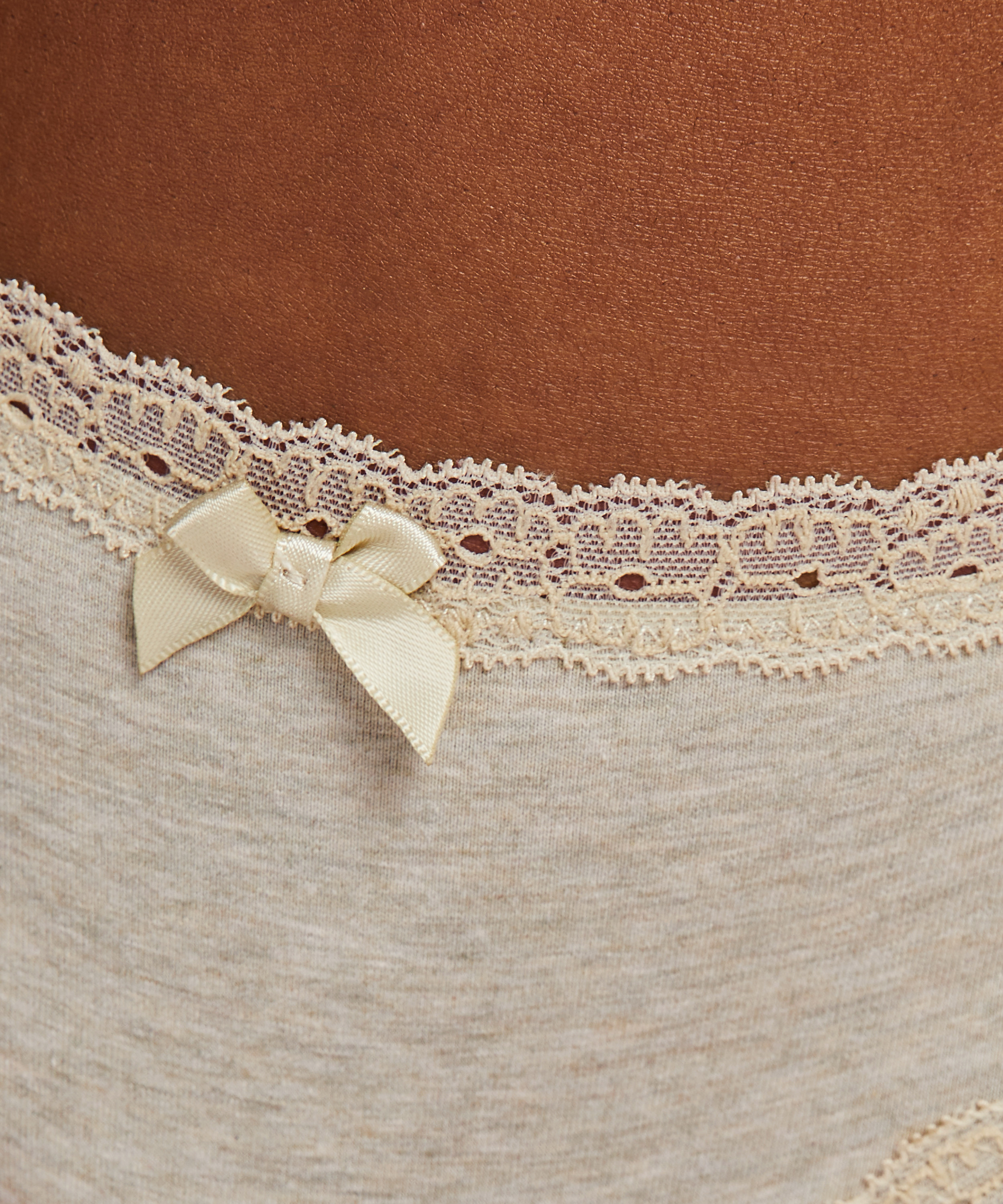Slip brésilien basique parfait pour tous les jours. Modèle à liseré de dentelle et finition petit nœud.