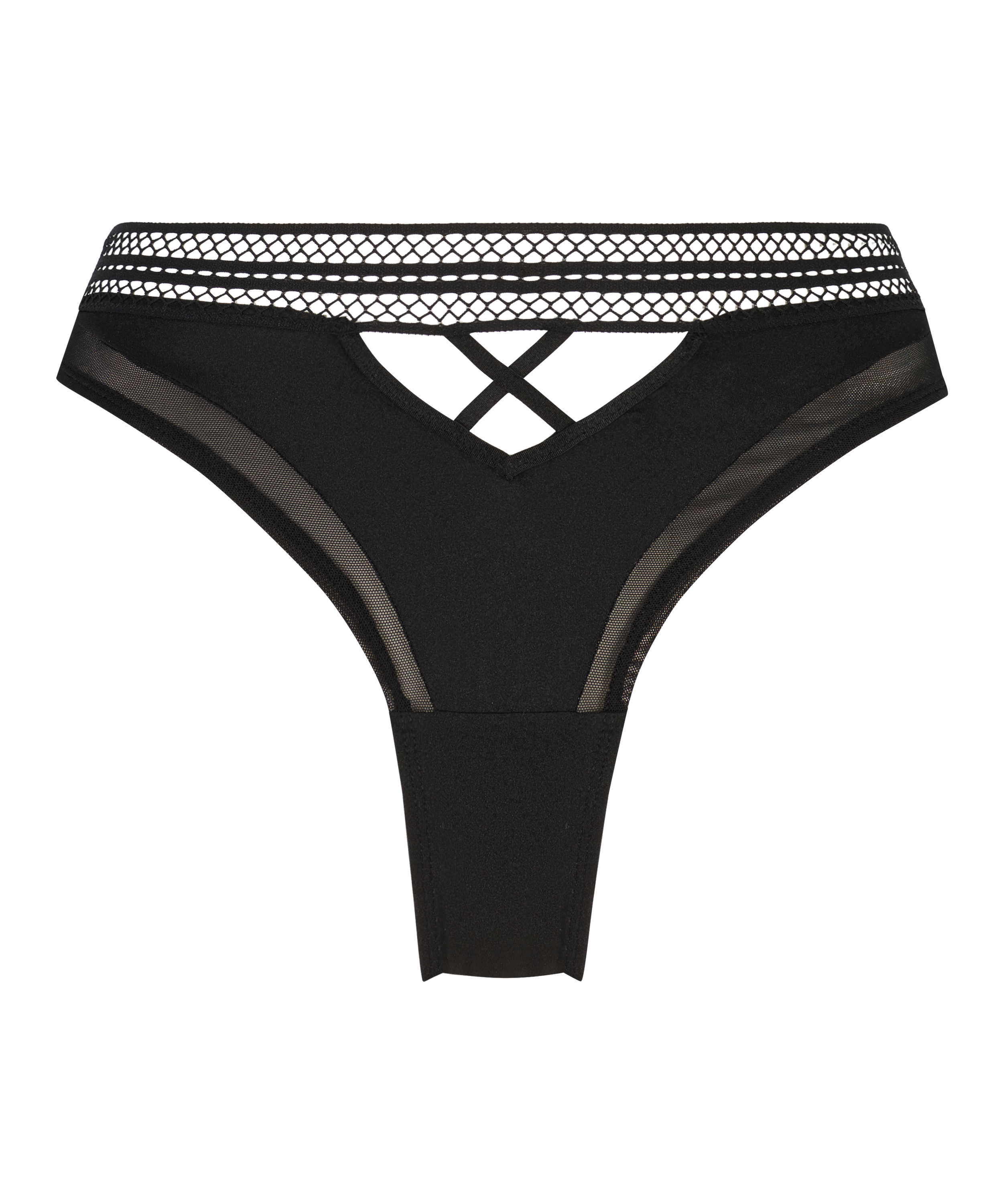 Ce slip brésilien sexy est tout ce dont vous avez besoin et plus encore. Avec des éléments en maille sur le devant et le dos, et une bande de taille présentant un aspect sexy de filet de poisson. Associez-le à un soutien-gorge assorti pour compléter votre look !