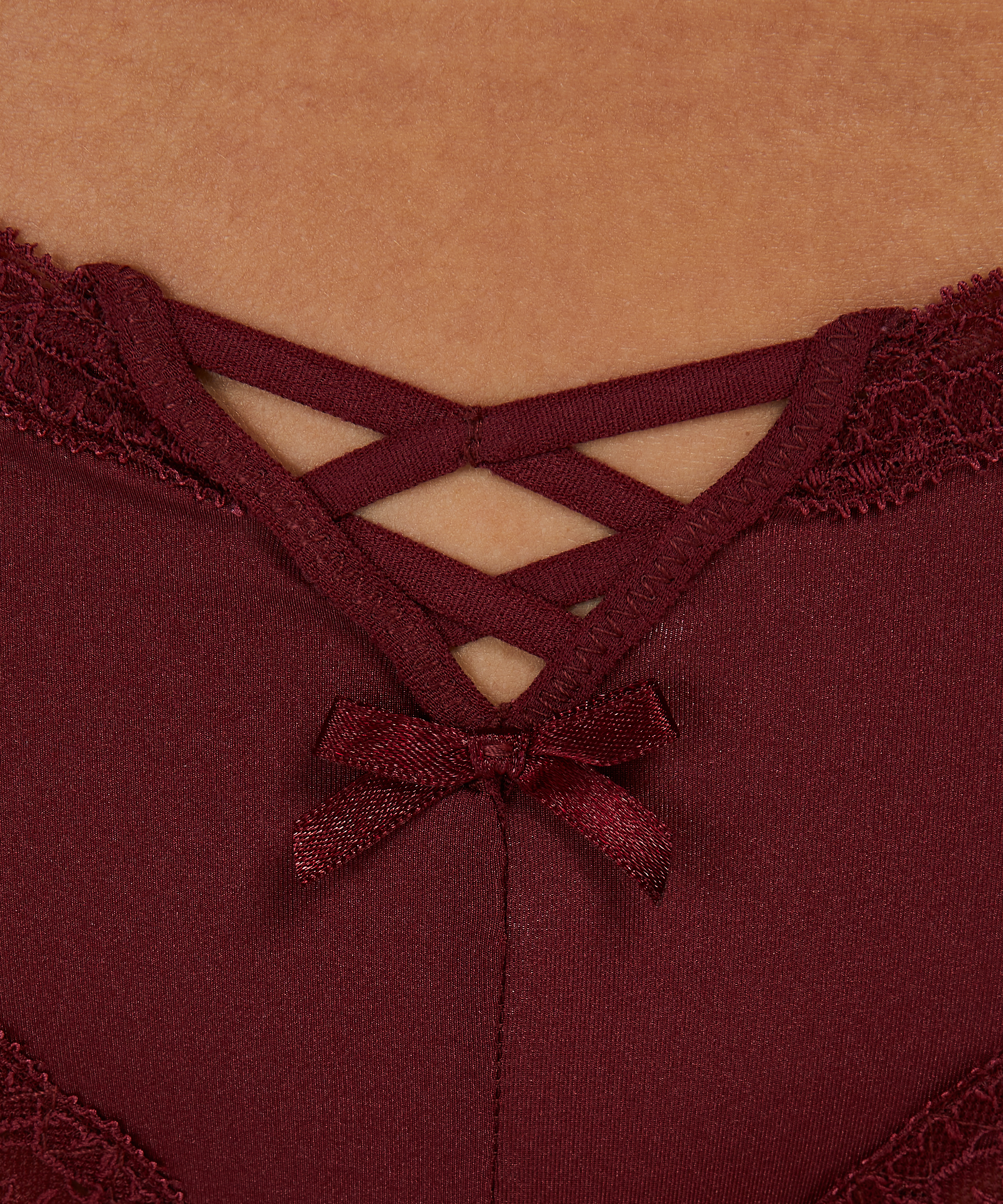 Ce slip brésilien en forme de V est un indispensable ! Les bords sont en dentelle et il y a des détails à lanières sur le devant. Il y a aussi un petit nœud en dessous. Facile à combiner avec différents soutiens-gorge de notre collection !
