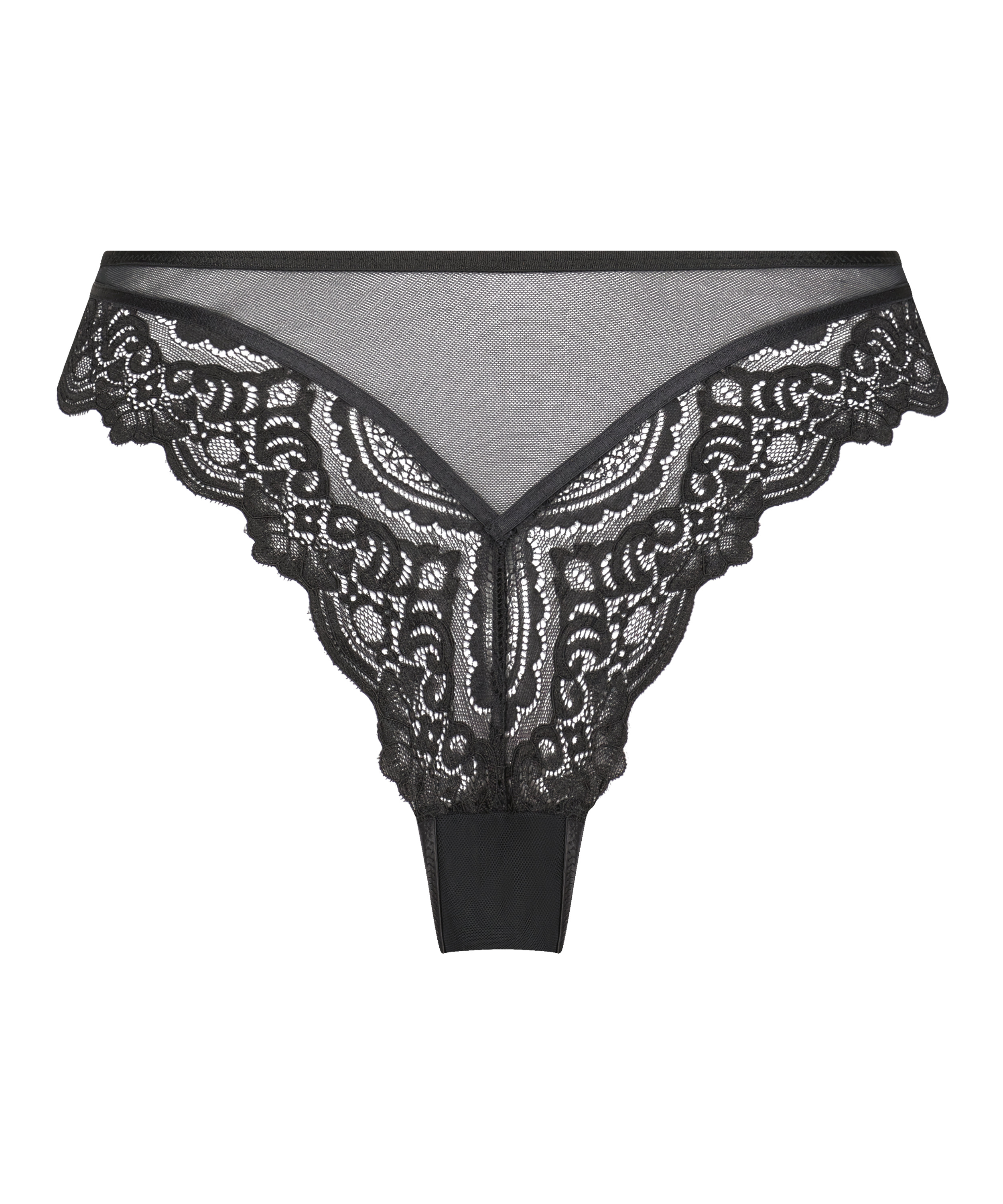 Soyez à l'aise avec ce slip brésilien ! Ce modèle taille haute est parfait pour que vous vous sentiez confiante et sexy. Détails en dentelle et tissu transparent sur l'arrière. Trouvez les soutiens-gorge assortis dans la collection !