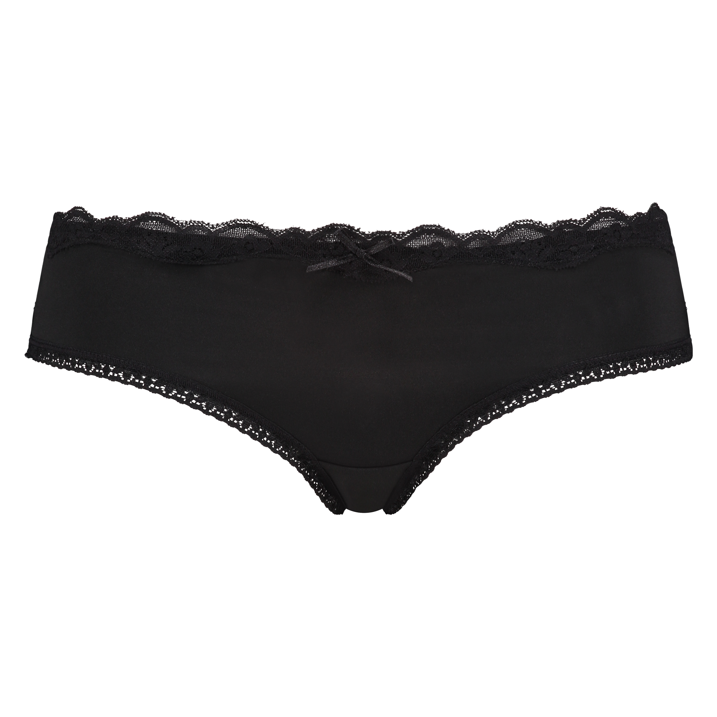 Slip brésilien noir, modèle TPE micro, à finitions dentelle. Jambes dentelle échancrées derrière. Jolie qualité extensible et coupe confortable. Disponible en divers coloris.