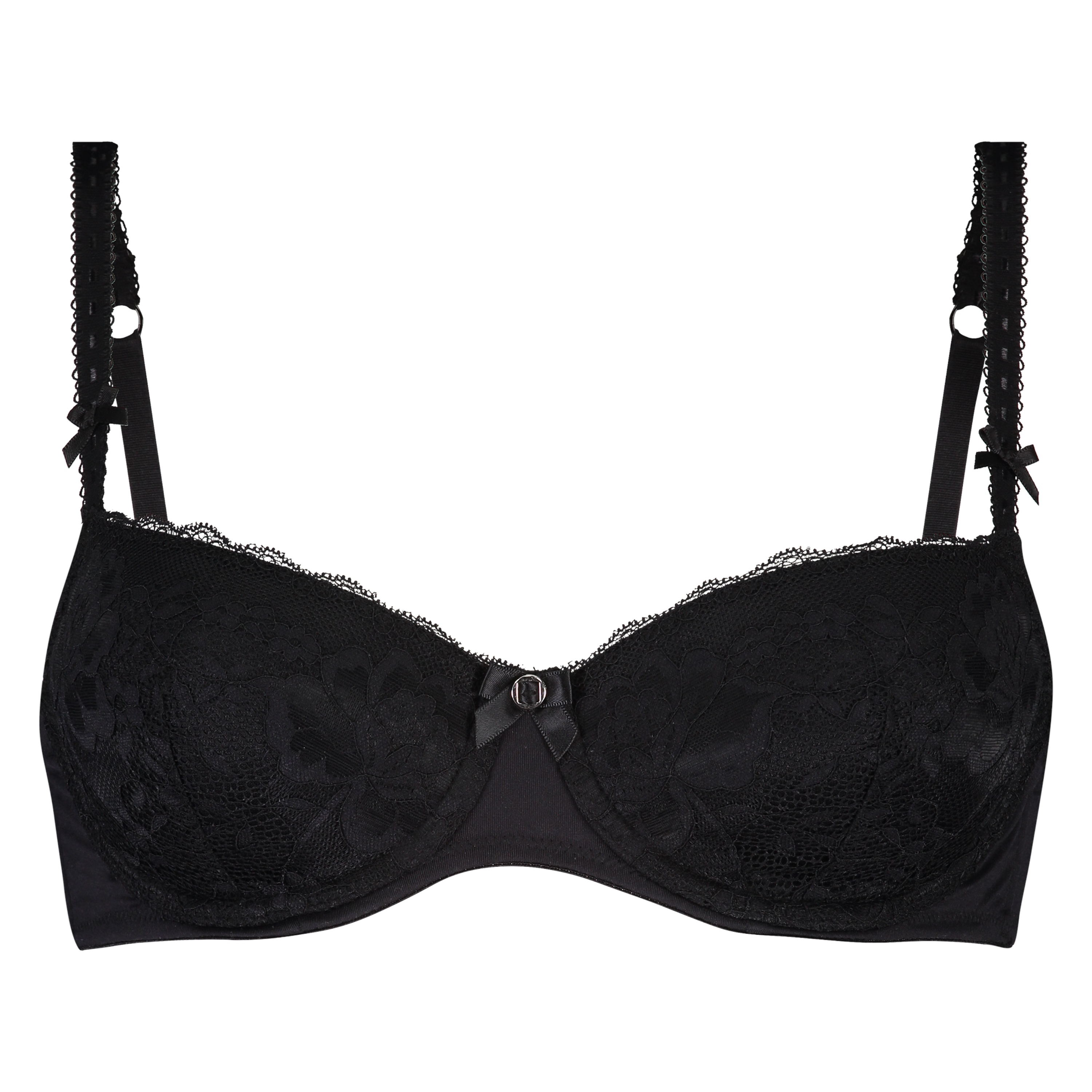 Les bonnets de ce soutien-gorge à armatures préformé sont recouverts de magnifique dentelle. Le soutien-gorge est décoré de détails subtils, comme le petit nœud entre les bonnets et sur les bretelles. Combinez-le avec le slip assorti pour avoir la parure complète.
