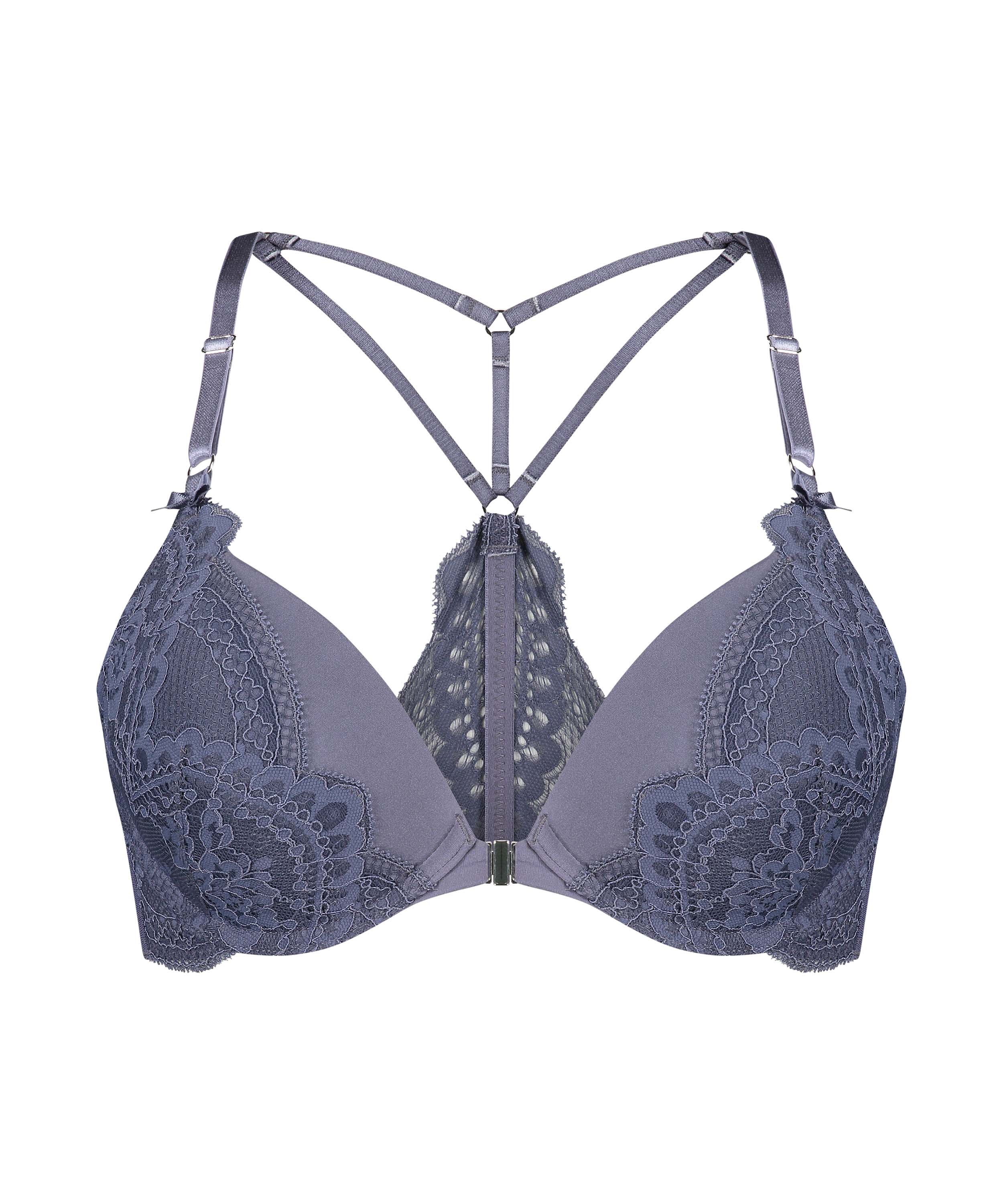 Alerte à la tendance ! Ce soutien-gorge push-up est notre préféré. Ce soutien-gorge a un racerback en dentelle sexy et une fermeture sur le devant. À combiner avec des articles assortis. Fait partie de la collection avec Rebecca Mir.