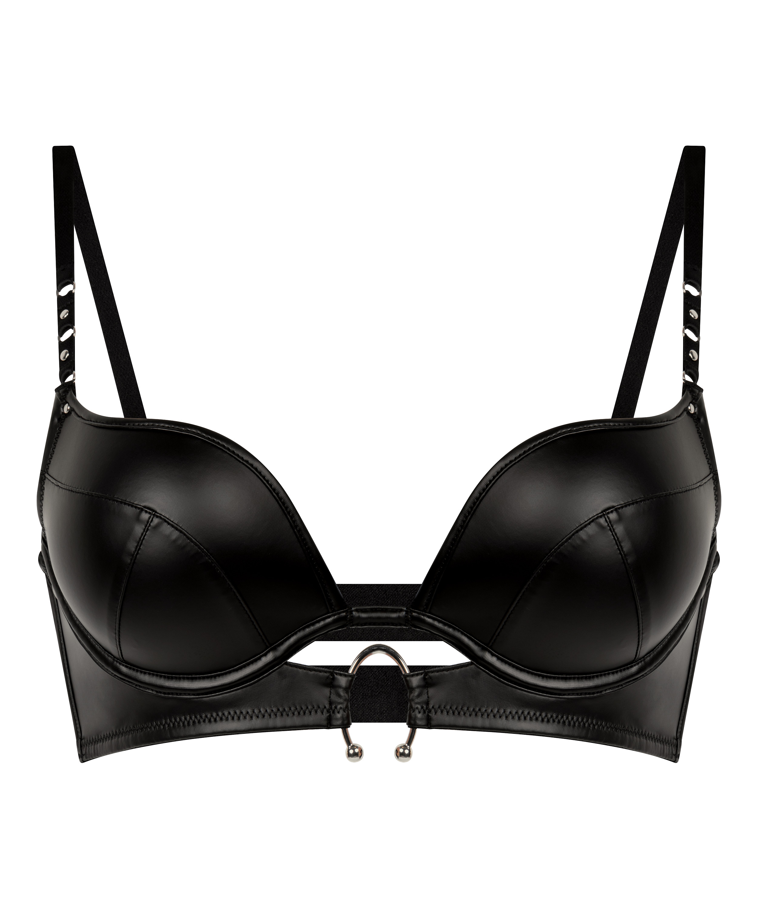 Prenez le contrôle grâce à notre soutien-gorge Zelda - intensité et perfection. Créé pour lifter, modeler et attirer l'attention, ce soutien-gorge pigeonnant rembourré est recouvert de similicuir pour un look élégant et percutant. Les bonnets à armatures offrent un soutien structuré, et le décolleté plongeant met en valeur vos courbes naturelles pour une silhouette audacieuse et confiante. Associez-lui le bas assorti pour un look complet.