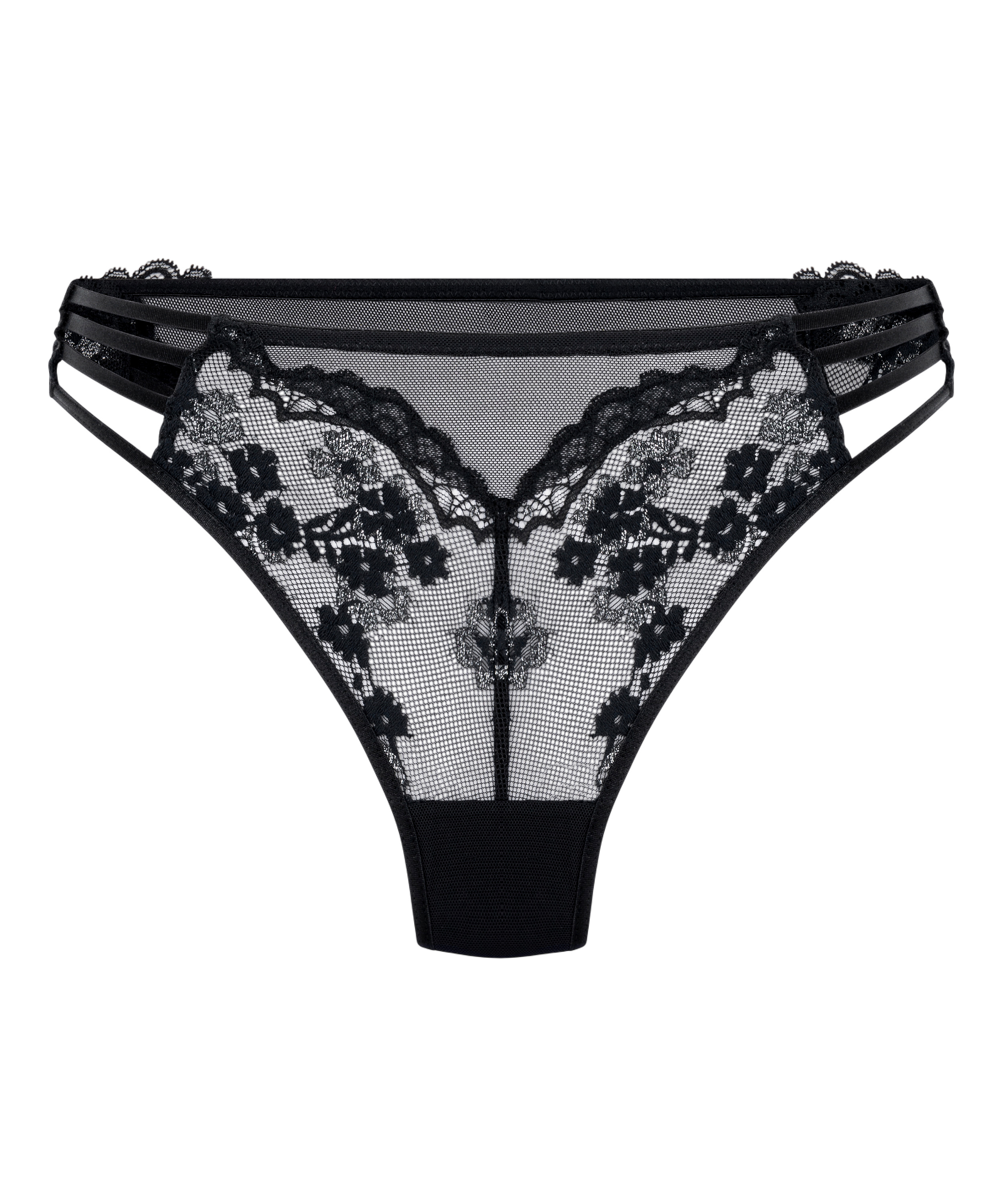 Ce string en dentelle, où l'élégance se mêle à l'audace, est un gage de confiance. Réalisé en dentelle douce et extensible, il présente des découpes complexes sur les côtés pour un look audacieux et sophistiqué. À porter avec votre soutien-gorge préféré pour un look complet.