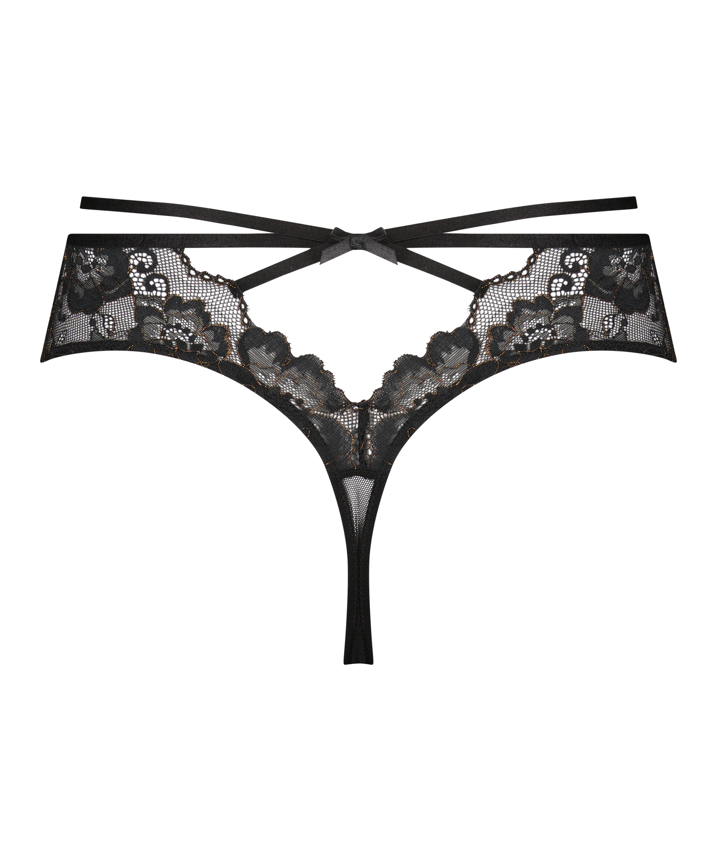 Sentez-vous hyper sexy dans ce string ! Il est principalement fait de dentelle, a un joli nœud à l'arrière et ses détails de lanières sont la touche finale. À combiner avec vos articles préférés.