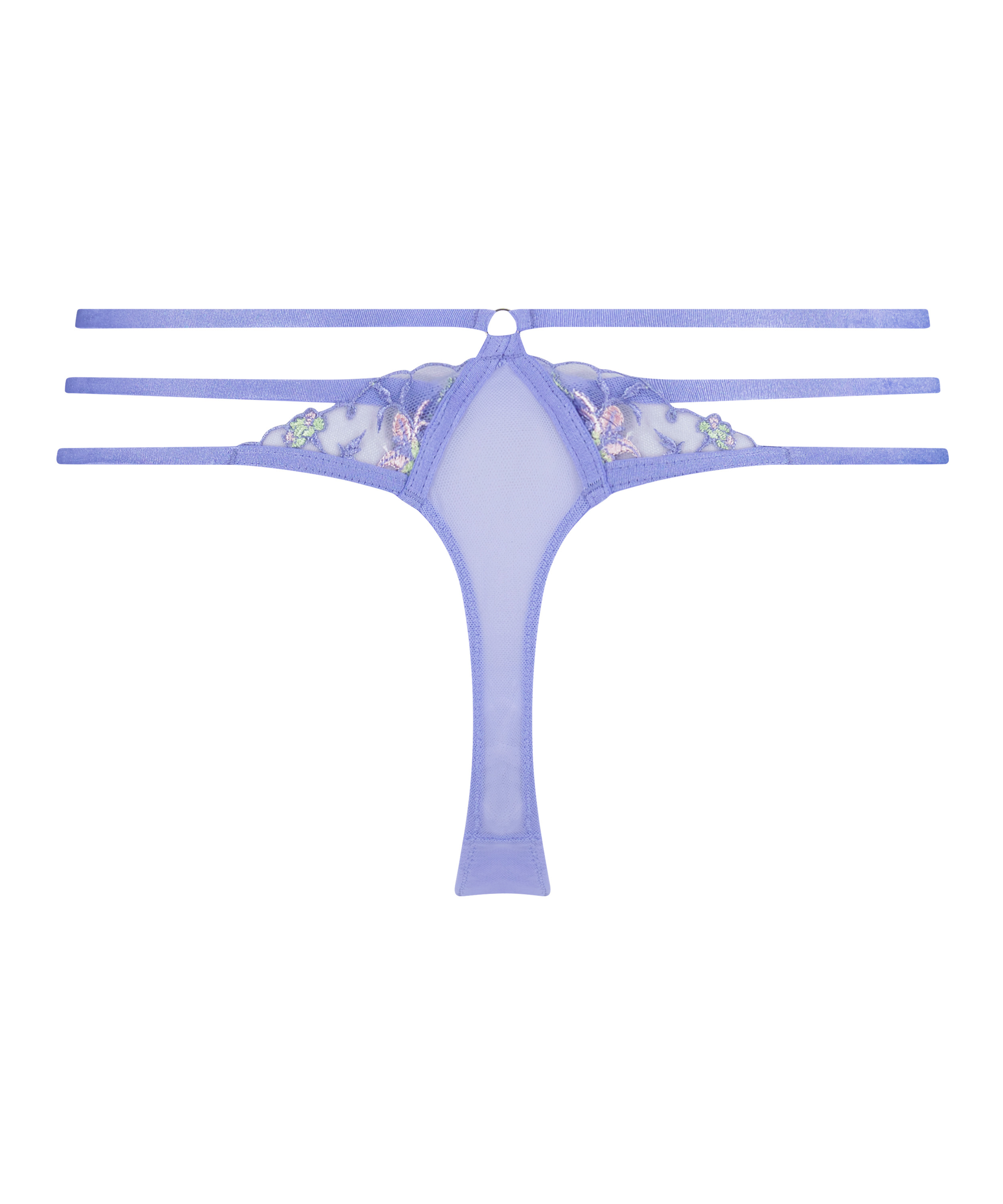 Vous allez craquer pour ce string ! Il présente de nombreuses découpes et des lanières pour un style sexy. Il arbore un aspect semi-transparent grâce à son tissu romantique en maille. Complétez votre look avec la brassière assortie.