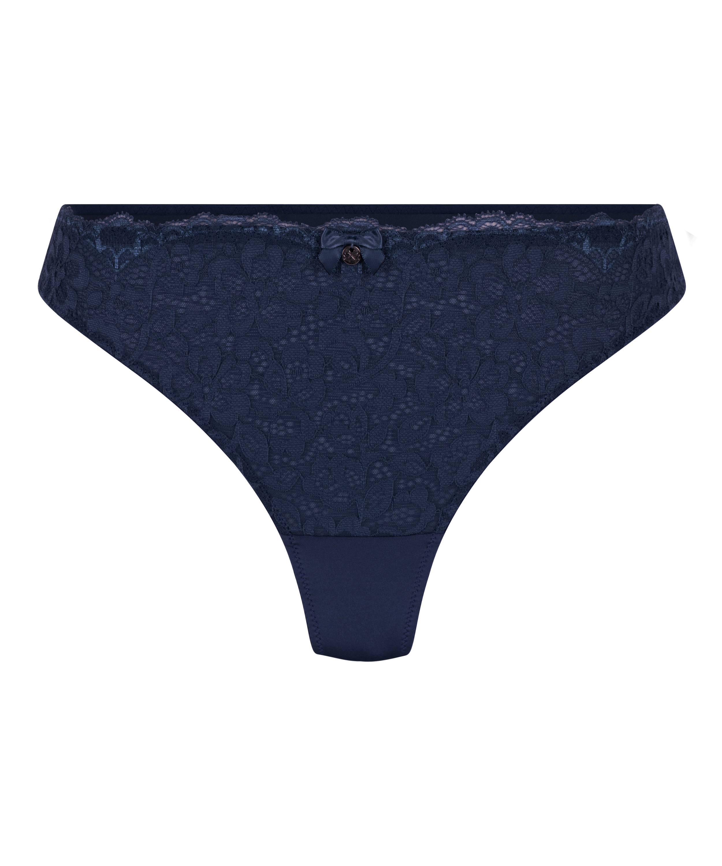Voici un magnifique string qui vous ira comme un gant ! Il est entièrement en dentelle fleurie et a un petit nœud décoratif au milieu. À combiner avec le soutien-gorge assorti pour avoir la parure complète.