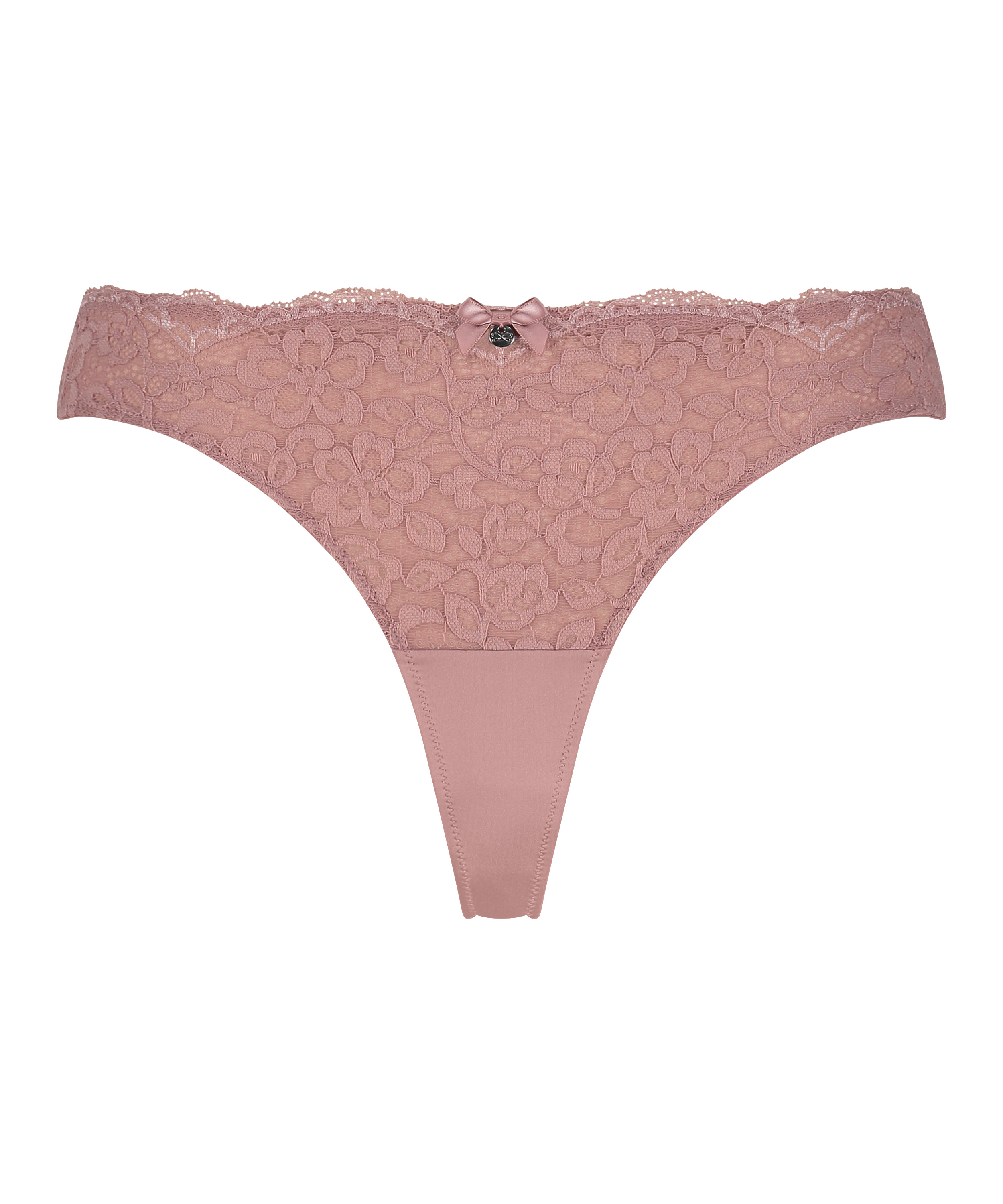 Voici un magnifique string qui vous ira comme un gant ! Il est entièrement en dentelle fleurie et a un petit nœud décoratif au milieu. À combiner avec le soutien-gorge assorti pour avoir la parure complète.