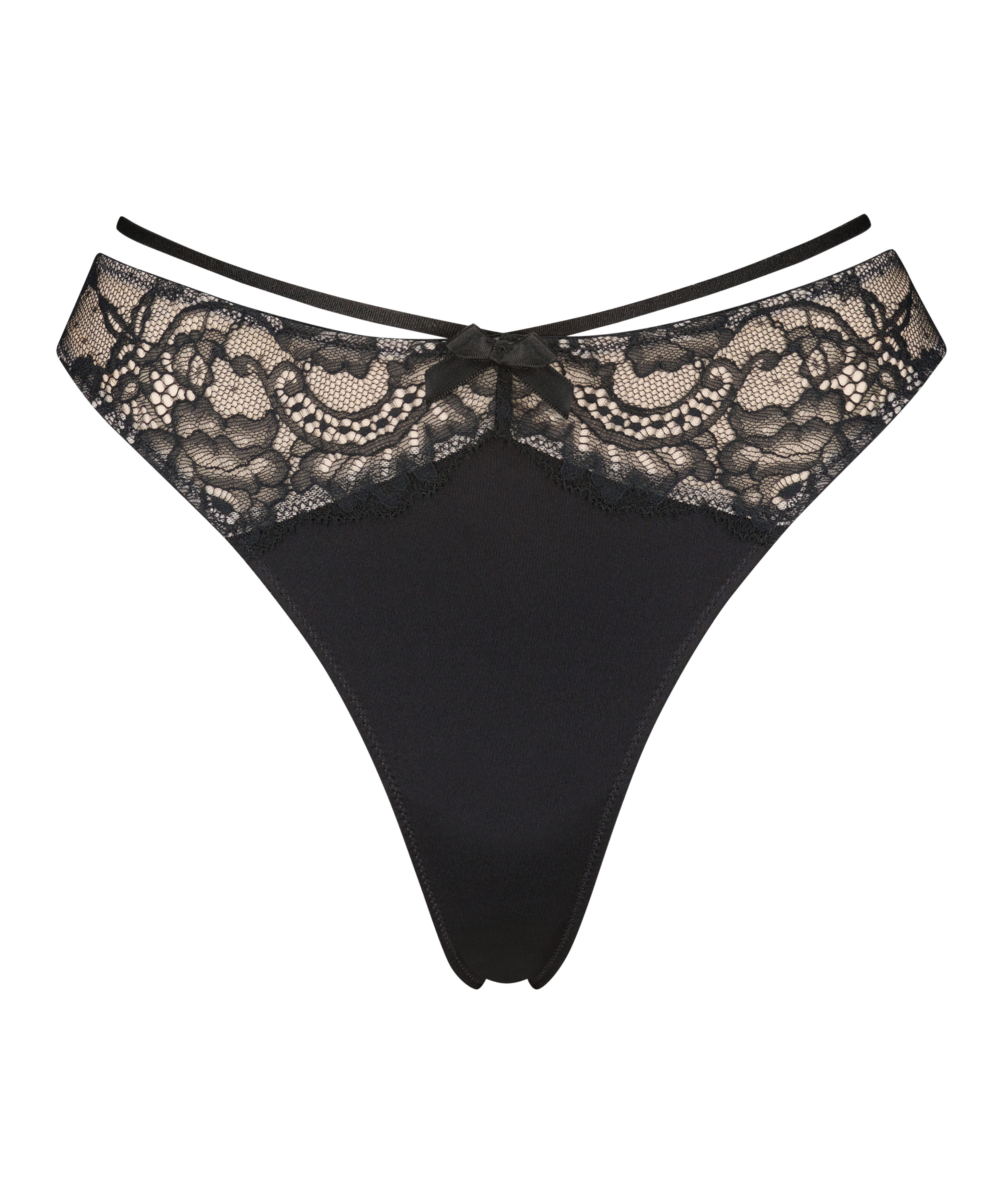 Ce string ludique est magnifique ! Le string a des détails à lanières sur le dessus et contient des détails en dentelle. Il a également un joli petit nœud. À combiner avec le soutien-gorge assorti.