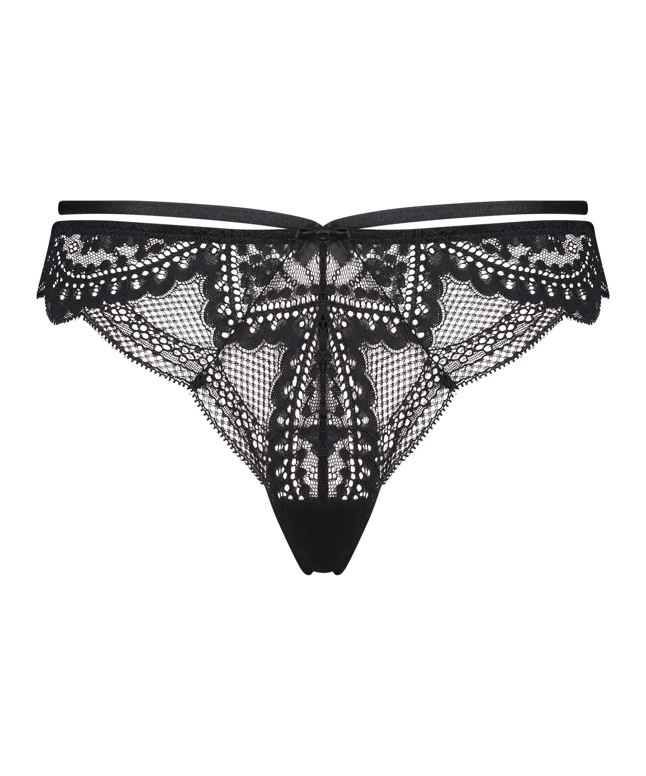String sexy avec des détails à lanières. Finition avec une dentelle semi-transparente. Ce string complètera votre ensemble de lingerie ! Fait partie de la collection avec Rebecca Mir.