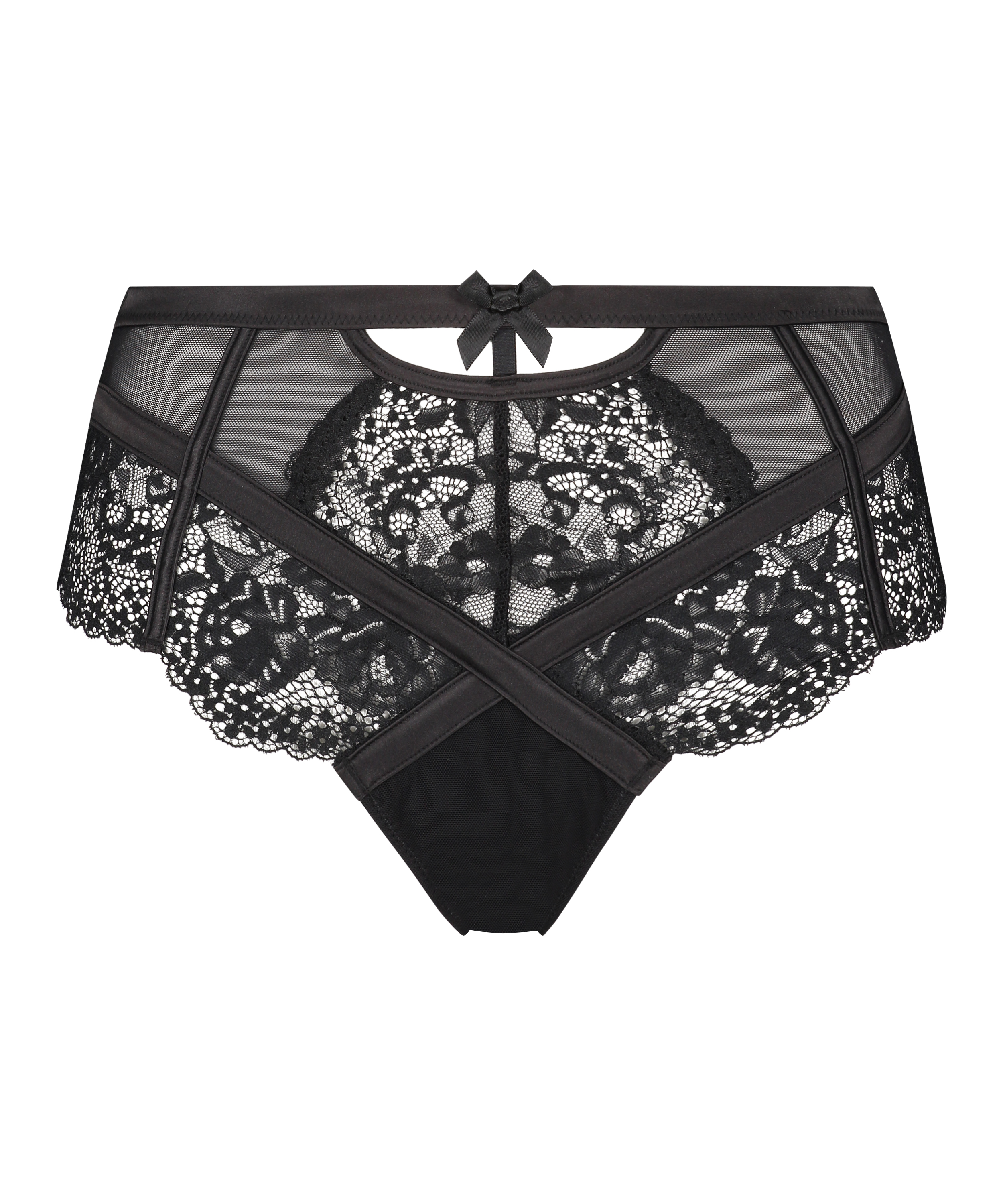 Ce slip taille haute est magnifiquement fini avec de la dentelle. Le slip a des bretelles en velours et des détails découpés. À combiner avec les éléments assortis pour parfaire votre look !